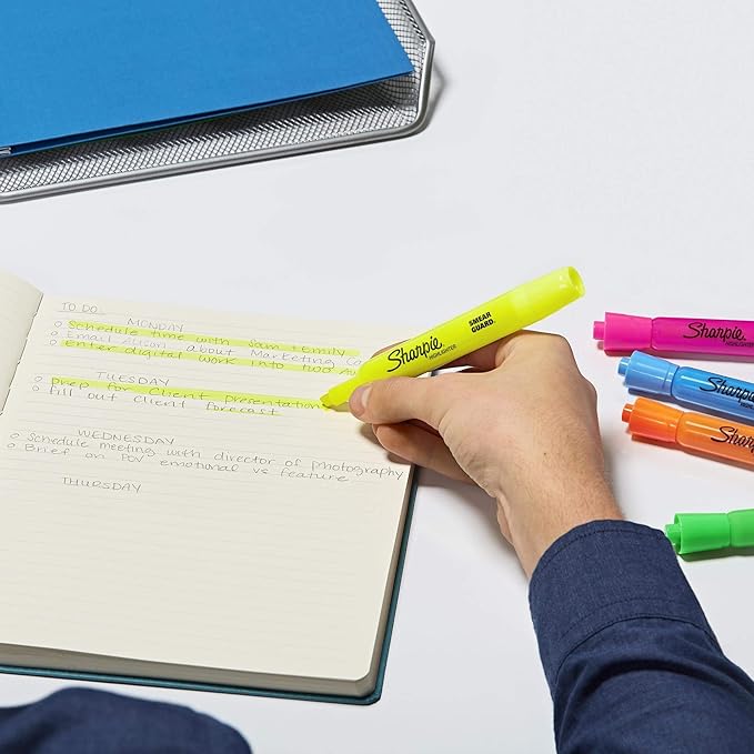 • Sharpie Tank Highlighters with wide barrel and large ink supply that delivers dependable highlighting