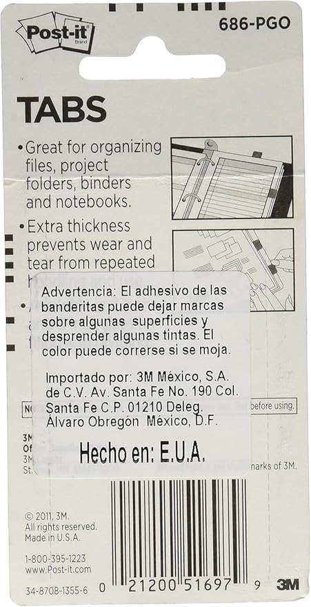 • Contains 22 Tabs per Color, 3 Colors with a total of 66 Tabs each in their own On-the-Go Dispenser