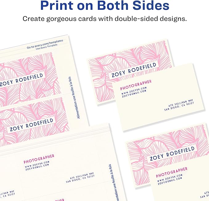 - Optimized for inkjet printers for jam & smudge-free performance guaranteed. Add crisp text and vibrant images to both sides of the professional business cards.