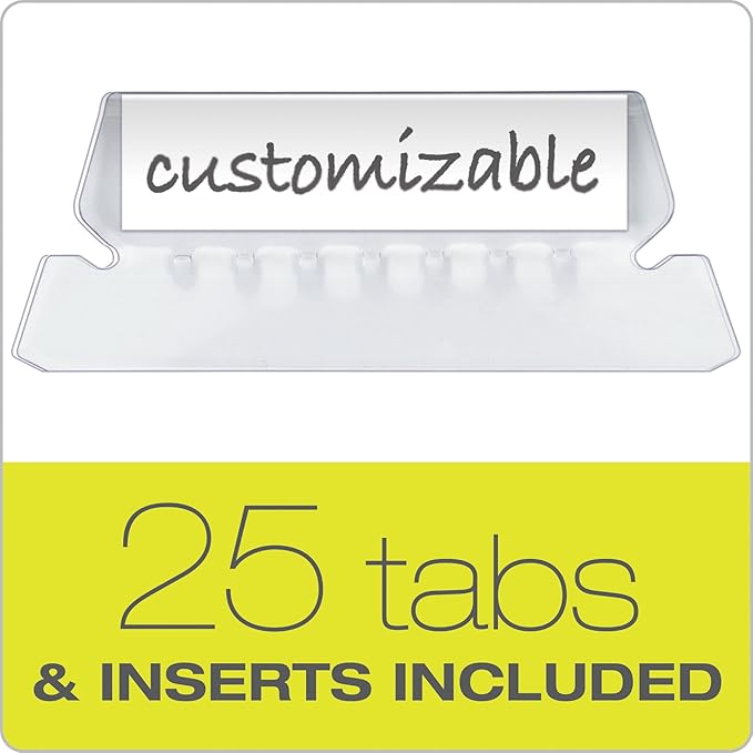 • Includes printable label sheet and 25 clear 1/5-cut tabs
