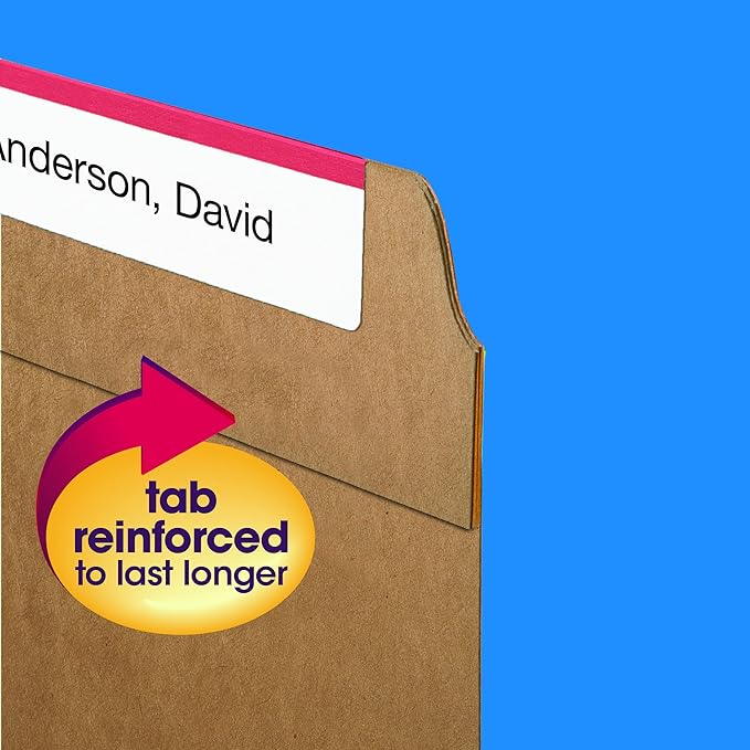 - Includes 50 letter size folders (11-5/8" W x 9-1/2" H). Each folder has a reinforced 1/3-cut tab in assorted positions