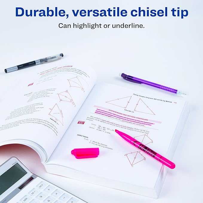 • Durable, chisel-tip highlighters won't fray and can be used to highlight or underline