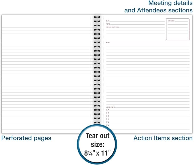 Cambridge Notebook, Business Notebook, 8-1/4" x 11", 80 Sheets, Ruled, Meeting Notes, Flexible Cover, Wirebound, Gray (06132)