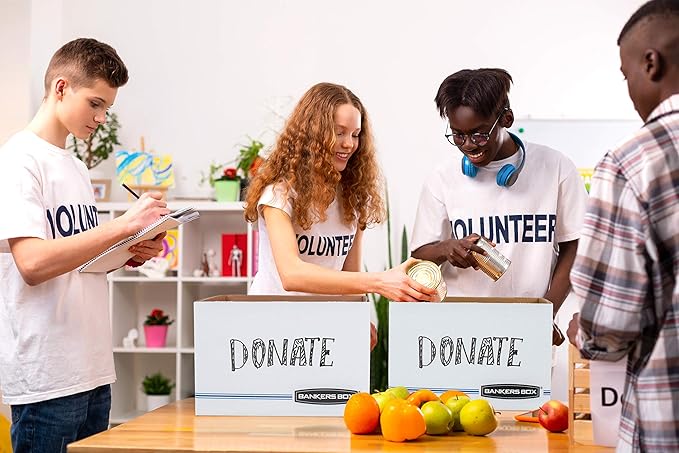 Bankers Box 4 Pack STOR/FILE Basic Duty File Storage Boxes, Standard Assembly, Lift-off Lid, Letter/Legal, White/Blue