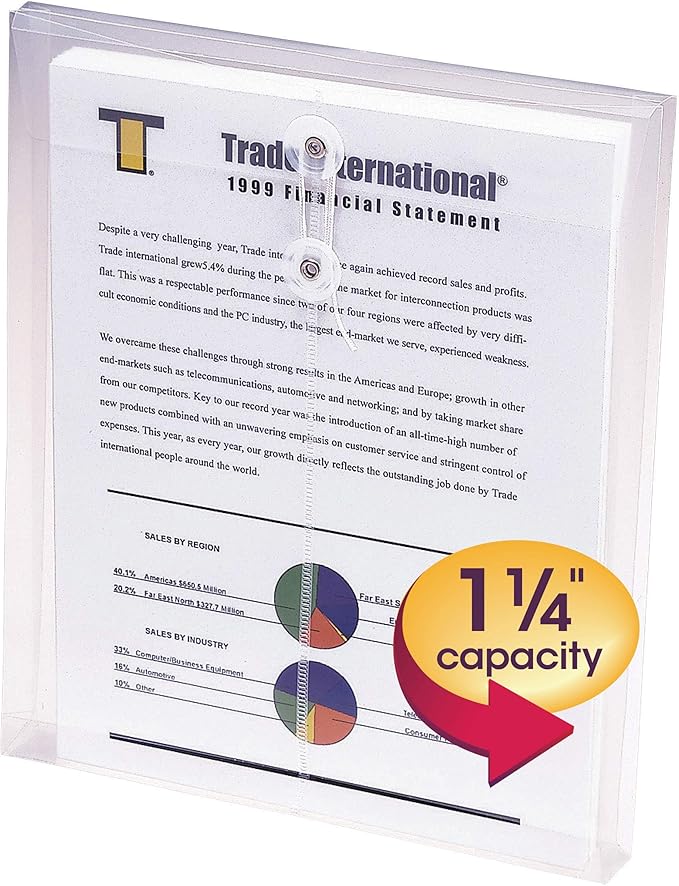 • Expands to 1-1/4" to hold up to 200 sheets; String-tie closure to secure contents