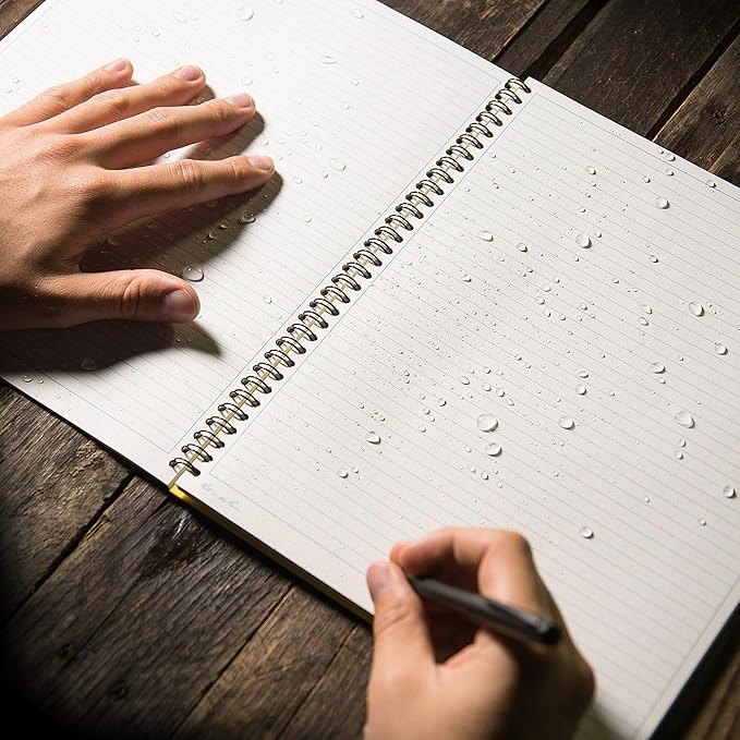 - WEATHERPROOF PAPER: 84 pages / 42 sheets per notebook. This paper that won’t turn to mush when wet and will repel water, sweat, grease, mud, and even survive the accidental laundry mishap and more.
