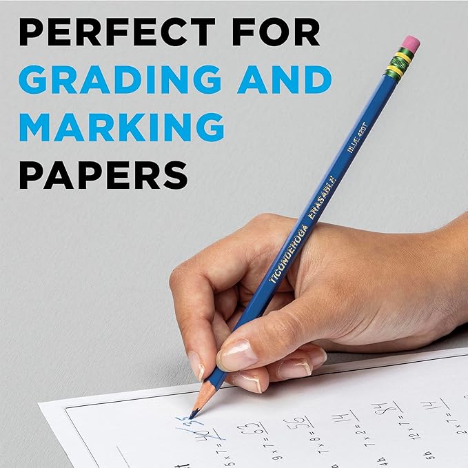Ticonderoga Erasable Checking Wood-Cased Pencils, Pre-Sharpened, Blue, 12 Count