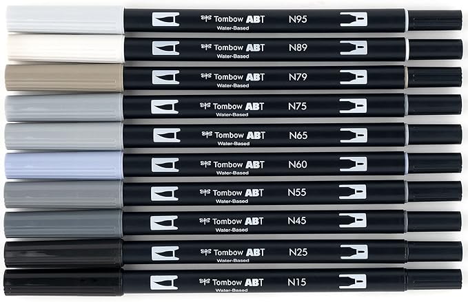 Tombow 56171 Dual Brush Pen Art Markers, Grayscale, 10-Pack. Blendable, Brush and Fine Tip Markers