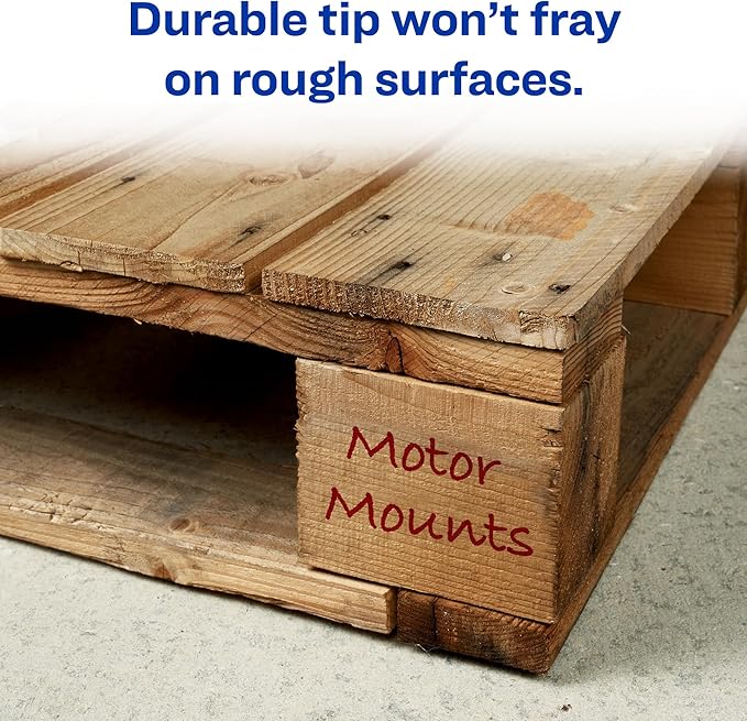 • Write smoothly on almost any surface with these red markers including cardboard boxes, PVC pipes, concrete walls, plastic bins and more
