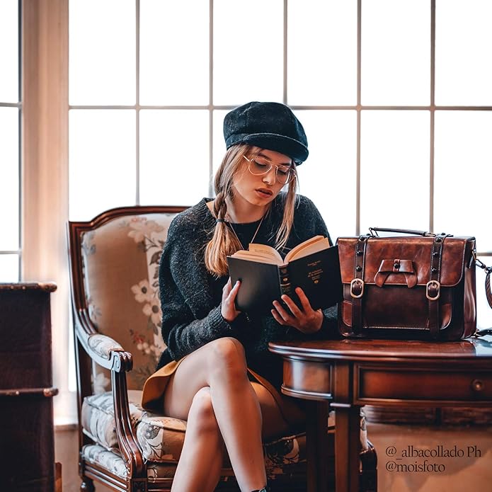 ECOSUSI Vintage Crossbody Messenger Bag Satchel Purse Handbag Briefcase for Women