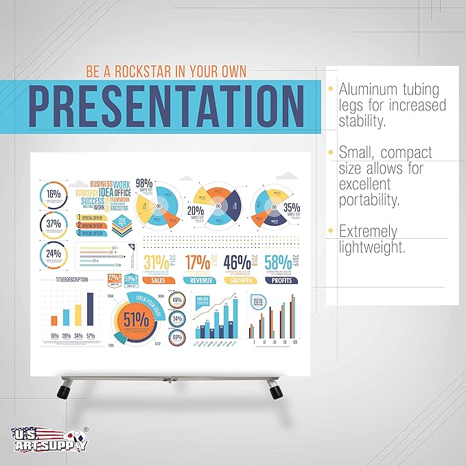 - Sturdy tripod easel that's made with premium quality lightweight tubular aluminum metal for extra stability. The non-skid rubber feet that provide added stability and also protect tabletop surfaces.