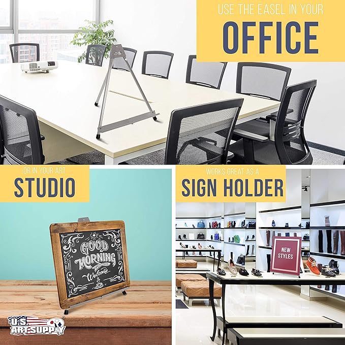- A simple, convenient table top display and artists easel that's commonly used for artwork paintings, framed photos, pictures and portraits, books, office presentations, event and store signs, poster and dry erase boards and more.