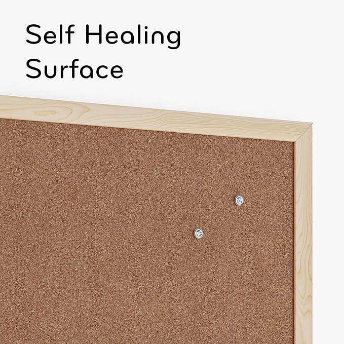 - UPGRADE YOUR WORKSPACE: This board features a classic birch wood style frame and the premium cork surface that add a touch of style and functionality to any space; includes two push pins