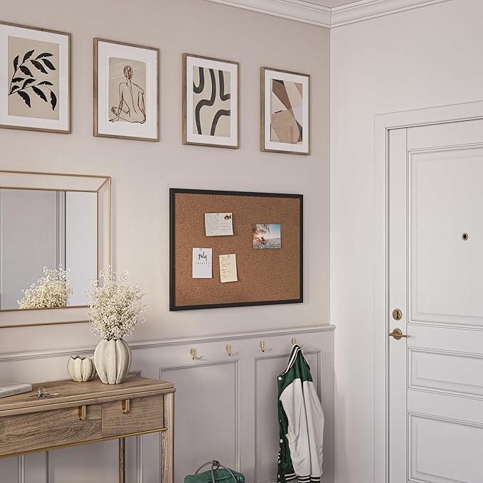 U Brands Cork Bulletin Board, 24'' x 36'', Black Wood Frame