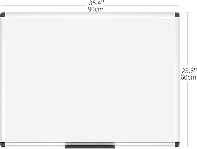 - 【Smooth Writing and Easy to Wipe】Magnetic whiteboard, overall size: 35.4" x 23.6" ( frame included); writing surface size: 34.0" x 22.2". Smooth & durable magnetic writing surface, easily dry wipe with all dry-erase markers. Give you a very smooth writing experience