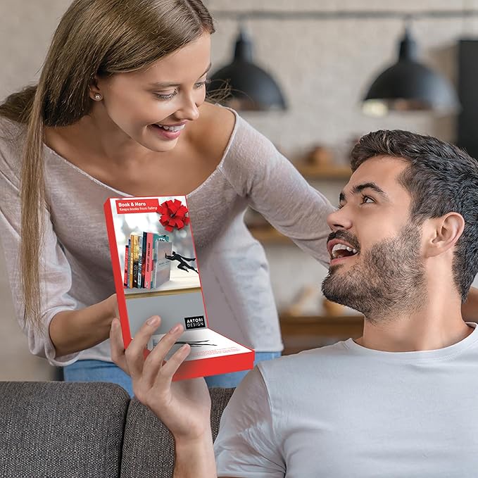 Artori Design Book Ends to Hold Books Heavy Duty - Hidden Metal Bookends for Shelves Desk or countertop - Bookend Book Holder for Home Decorative - Gift for Book Lovers and Home Décor (Book&Hero)