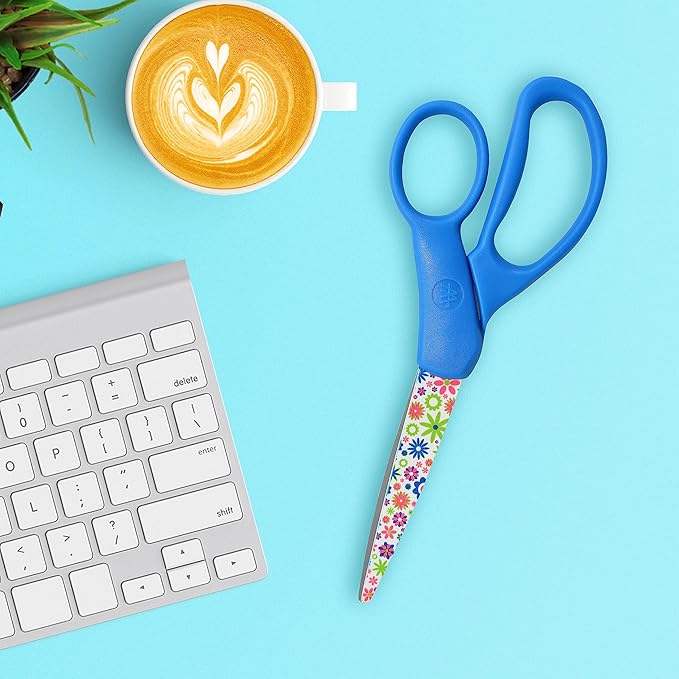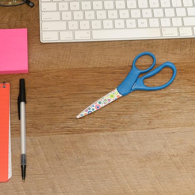 - Fun and Functional: These fashionable school and office scissors feature floral-print blades and color-coordinating handles