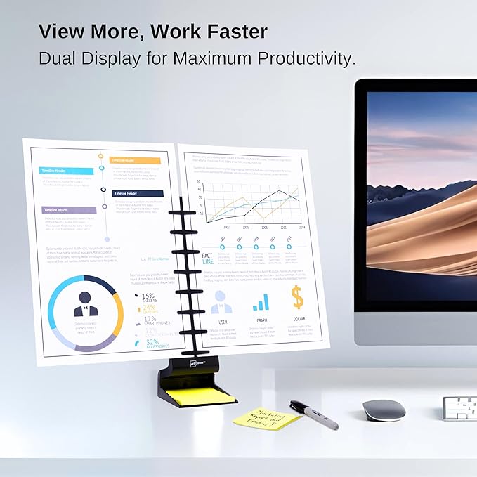 - Dual Page In-Line Display for Fast Typing: This paper holder for desk is designed to enhance productivity by allowing you to display two pages side by side. The dual paper referencing system facilitates faster typing and efficient tracking of documents, making it ideal for those who regularly work with multiple papers or data sources. It supports effective multitasking by keeping relevant information directly in your line of sight, thus speeding up data entry and document comparison tasks.