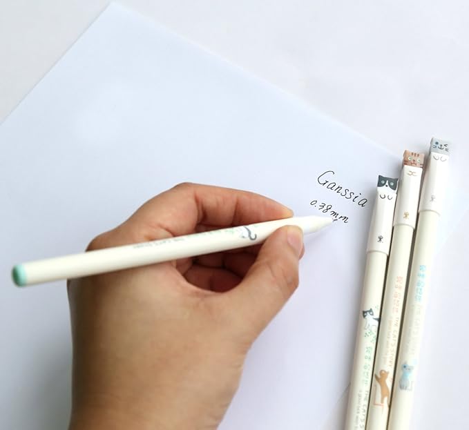 • One set total 6pcs kawaii cute Cat pens, 3 different cute cats colors with the cat design cap topper and pens body.