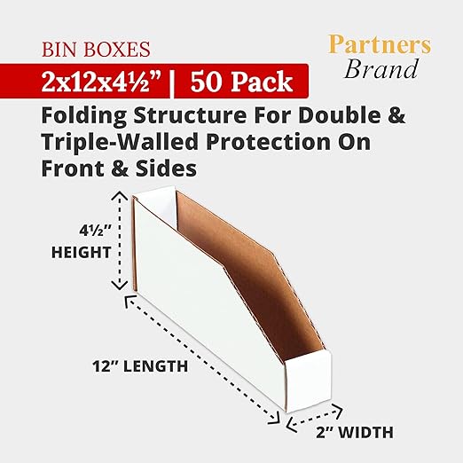 Partners Brand PBINMT212 Open Top Bin Boxes, 2" x 12" x 4 1/2", Oyster White (Pack of 50)