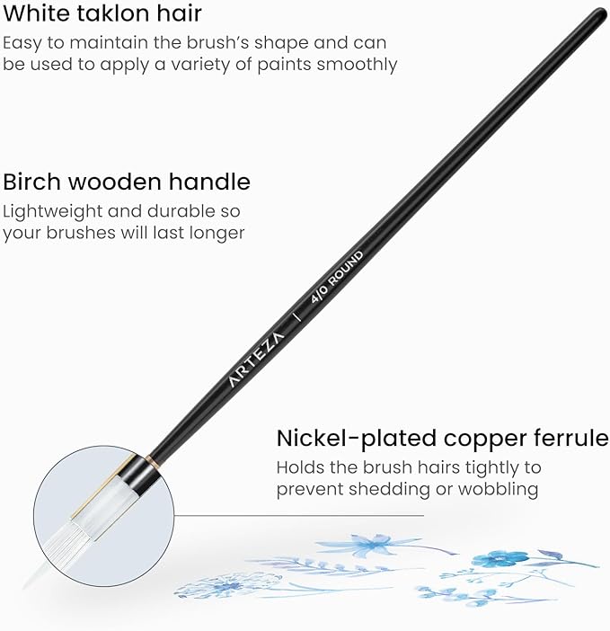 - Wide Range of Brush Sizes: Find the perfect tiny or thin paintbrush in this complete set that includes liners, rounds and flats of 4/0, 3/0, 2/0, 0 & 1 sizes