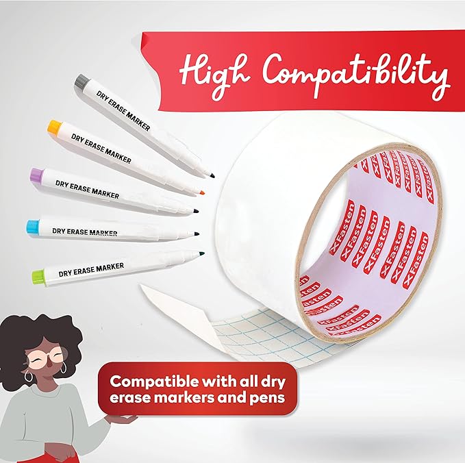 - Reliable dry erase tape that resists smudging and ink does not erase or rub off unnecessary when written over by the marker or touched accidentally by the hand. Compatible to all dry erase markers and pen.