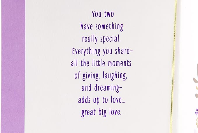 - Inside message: you two have something really special. Everything you share—all the little moments of giving, laughing, and dreaming—adds up to love. . . Great big Love. Today is about celebrating that love, your life together, and the joy within your journey.
