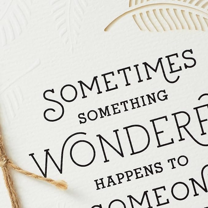 • Cover features an embossed fern leaf pattern accented with natural twine. Inside reads: "...like you! Congratulations."