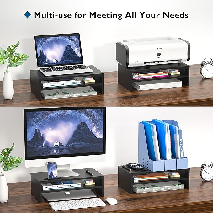 - 【EASY TO ASSEMBLE MONITOR RISER】This monitor stand riser instructions are clear and easy to follow, so the assembly takes only a few minutes. The monitor stand includes soft rubber feet, ensuring your monitor is perfectly stabilized on your desk and the desktop remains scratch-free.