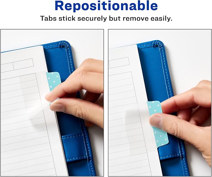 - Stick securely to any page or document; the durable and repositionable tab is strong enough to turn a page, but removes easily for quick and clean changes