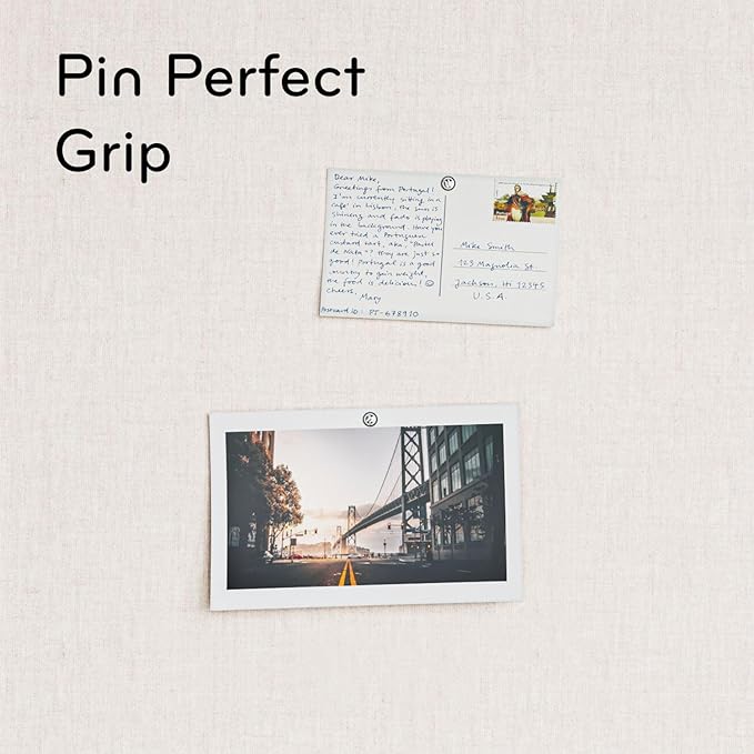 - UPGRADE YOUR WORKSPACE: This board features a white farmhouse wood style frame and an elevated linen surface that add a touch of style and functionality to any space; includes two push pins; the top choice home office decor; includes two push pins