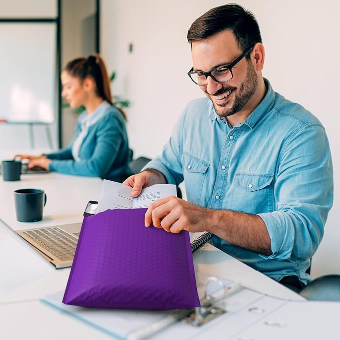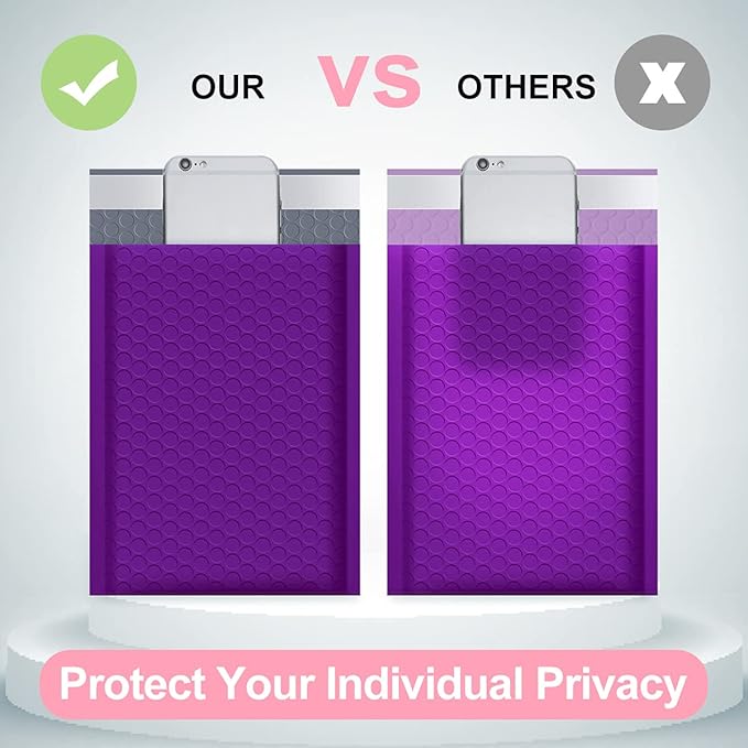 - Opaque Poly Bubble Mailers: The purple bubble mailers outer size is 8.5x12 inch, while the inner size is 8.5x11 inch. With full air bubbles, our bubble mailers can protect your value products from damage caused by external impacts. The inner lining is using gray film, even if there is strong light, the items in the bag cannot be seen, which can protect your privacy well