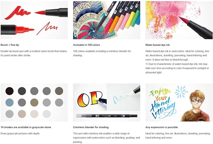 • Water-based pens ideal for coloring, fine art, illustrations, doodling, journaling, hand lettering and more.