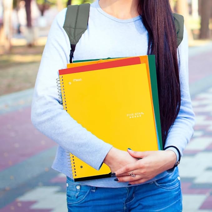 Five Star Spiral Notebook + Study App, 5 Subject, Wide Ruled Paper, Fights Ink Bleed, Water Resistant Cover, 8" x 10-1/2", 200 Sheets, Harvest Yellow (73469)