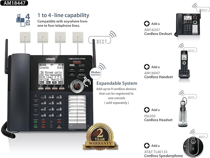 - Simple installation: Connect the main console to analog phone lines and the handsets/desksets wirelessly connect to the system. Install an entire office in minutes without professional assistance!