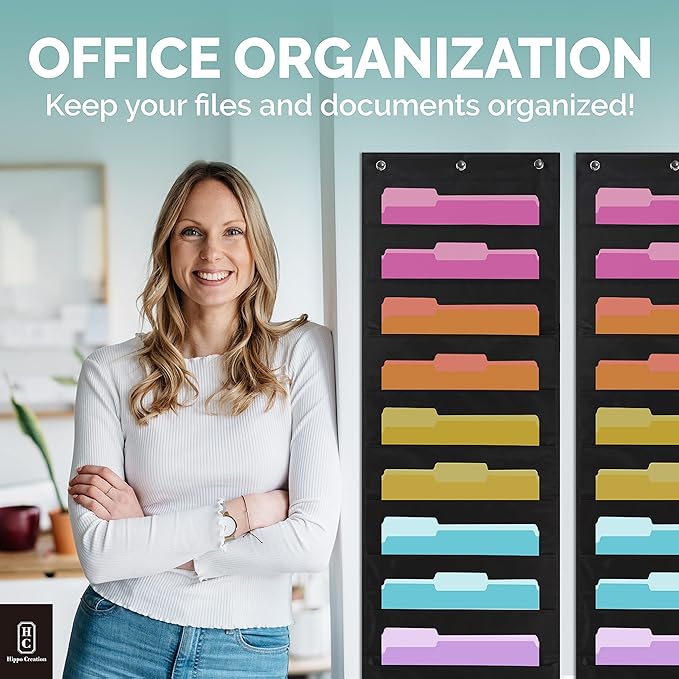 - Wall File Organizer: Our hanging file organizer has been thoughtfully designed for quick & easy access. Unlike other pocket charts, ours is made of thick, sturdy material (not flimsy) that stays flat against a wall or door.
