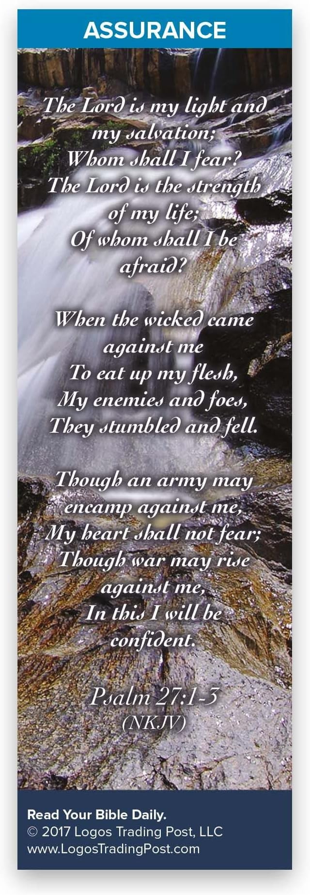 Christian Bookmark with Bible Verse, Pack of 25, Assurance Themed, The Lord is My Light and My Salvation Bookmarks, Psalm 27:1-3