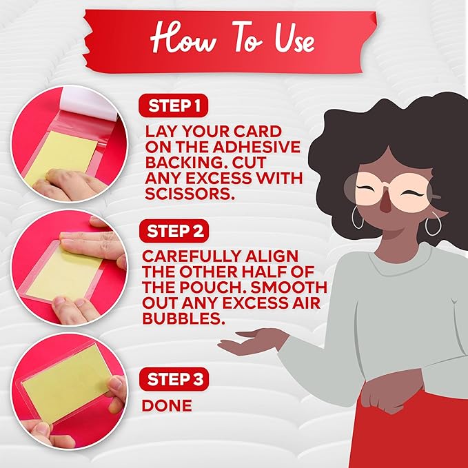 - The card laminate sheets’ adhesive provides heavy-duty sealing, thus eliminating air bubbles and gaps during installation allowing your card to have a neat and sleek look.