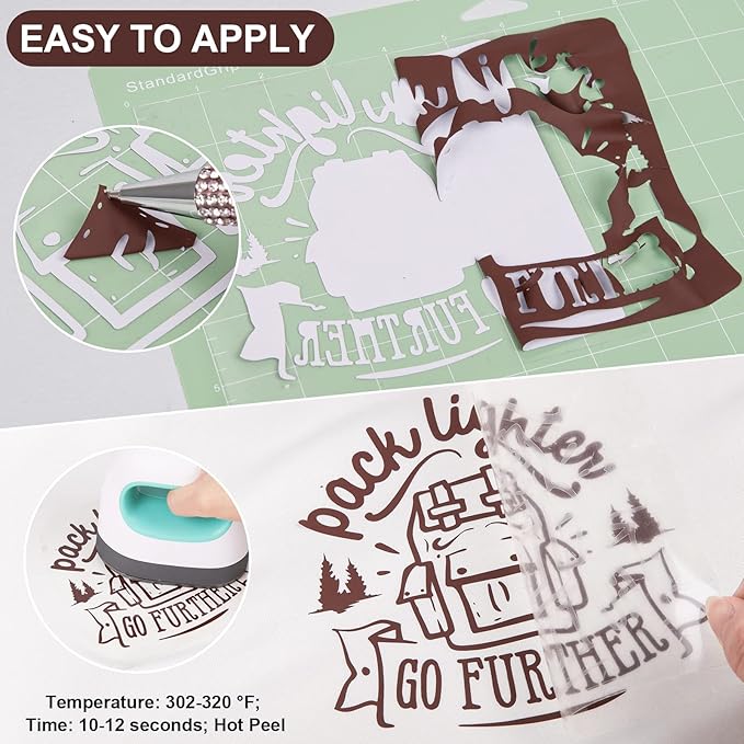 - ✂️EASY TO APPLY: Just use craft cutter and a home iron to get the job done. Apply for approximately 10-12 seconds at 302-320 °F (150-160 °C) and about 10 LBS of pressure. Be sure to cold peel.