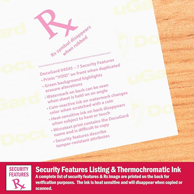 - Fight fraud with DocuGard’s advanced blue security paper that has seven layered features ensuring that your prescriptions and documents cannot be tampered with or accurately duplicated.