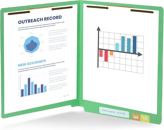 - Our file folders are made of thick 11 PT Green paper stock that is designed for use with any office color-coded file system