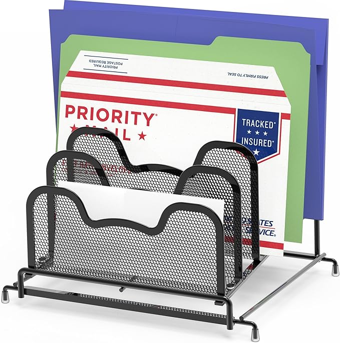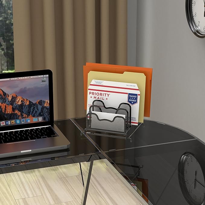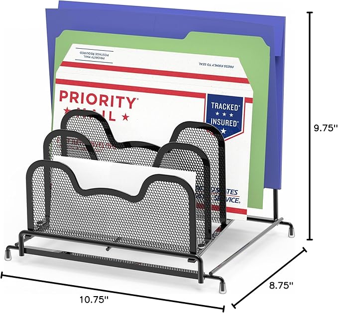 • Space-saving mesh design with stacking file sorter. No Tools Needed.