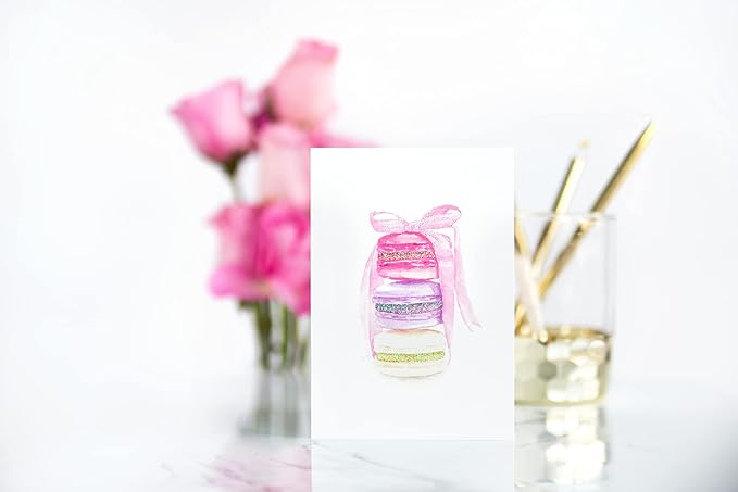 - Papyrus cards feature a stack of macaroons and embellished with glitter. Packaged in a patterned box with a protective plastic lid, this boxed stationery set is made to last.