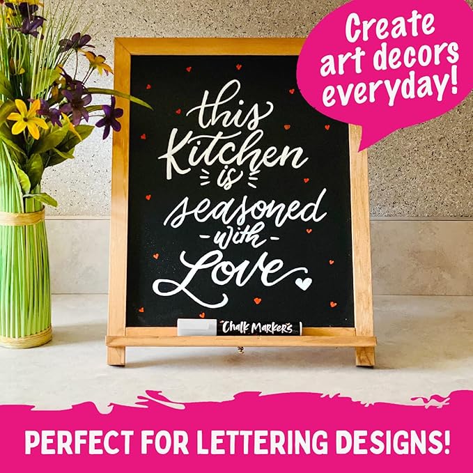 - Long Lasting - While other pens crack under heavy use, our richly pigmented chalk marker pen set stays fray free.