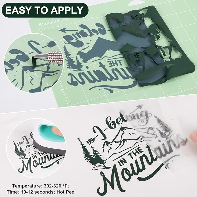 - ✂️EASY TO APPLY: Just use craft cutter and a home iron to get the job done. Apply for approximately 10-12 seconds at 302-320 °F (150-160 °C) and about 10 LBS of pressure. Be sure to cold peel.