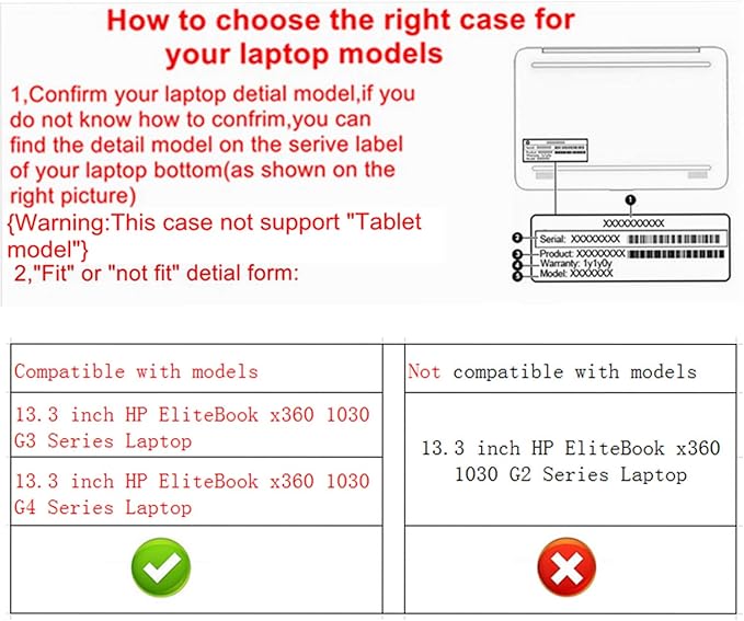 - This case not a universal laptop bag,each case are only suitable for some especially laptop models.It is especially designed for 13.3" HP EliteBook x360 1030 G3/HP EliteBook x360 1030 G4/HP ProBook 430 G8/HP ProBook 635 Aero G7 Laptop.