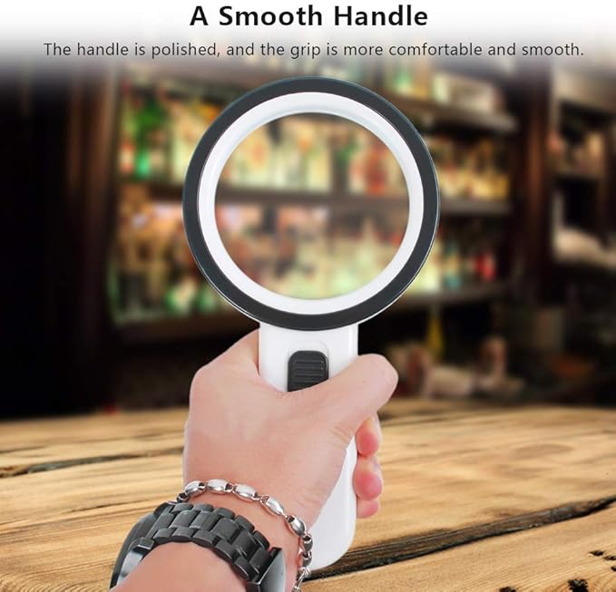 - Easy to Use: Comes completely assembled, just requires 2x AA batteries (not included). Once the batteries are added, the magnifying glass is ready to go, making it perfect for the elderly or those requiring an intuitive magnification system