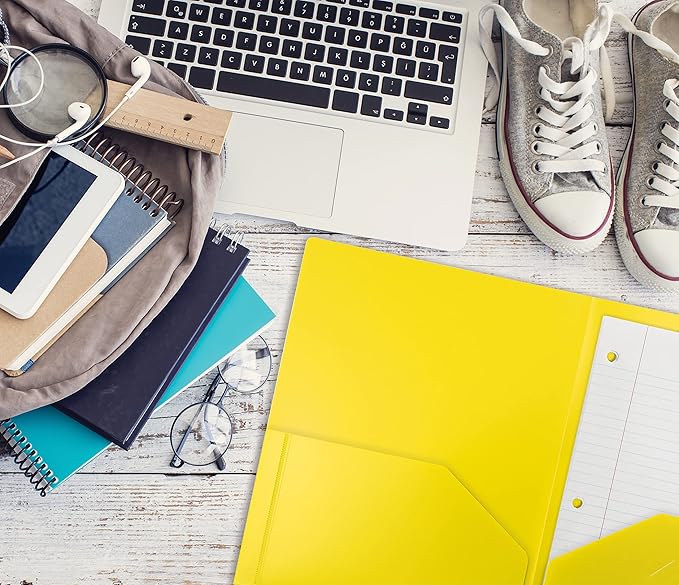 Better Office Products Heavyweight Plastic 2 Pocket Portfolio Folder, Letter Size Poly Folders 24 Pack (Yellow)