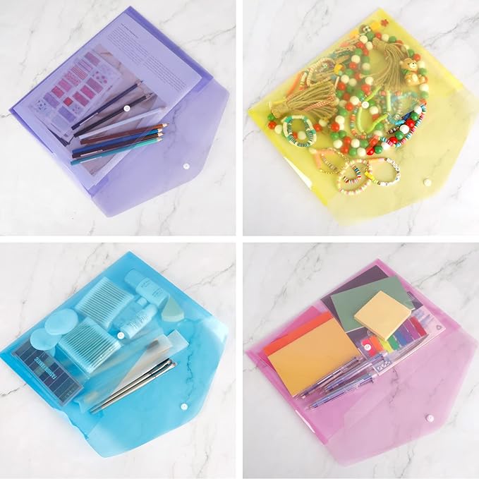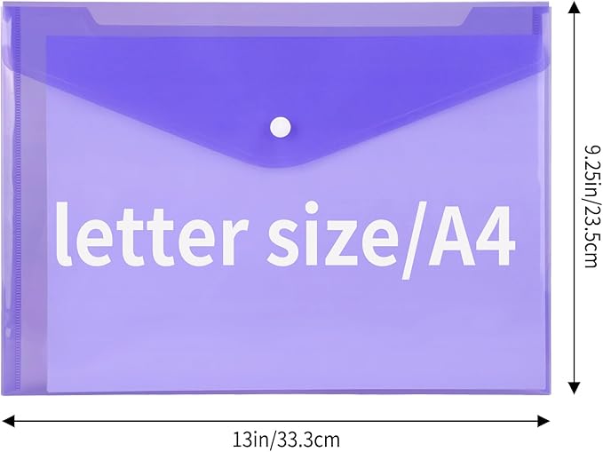 - PACKAGE INCLUDES: 28pcs 8-color A4 size transparent poly folders with snap button closure.