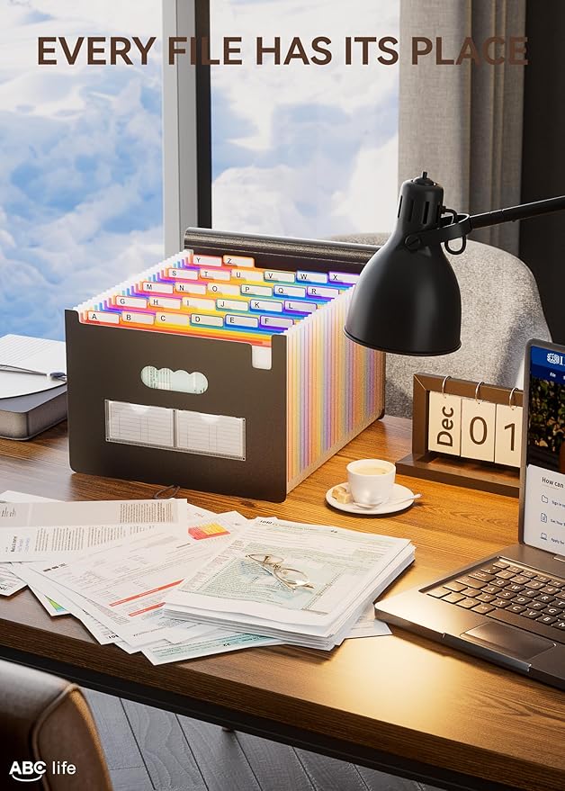 ABC life 26 Pockets Accordion File Organizer, Expanding File Folders, Portable Monthly Bill Receipt Organizer with Colorful A-Z Tabs, Desktop Folders Letter A4 Paper Document Storage for Home Office